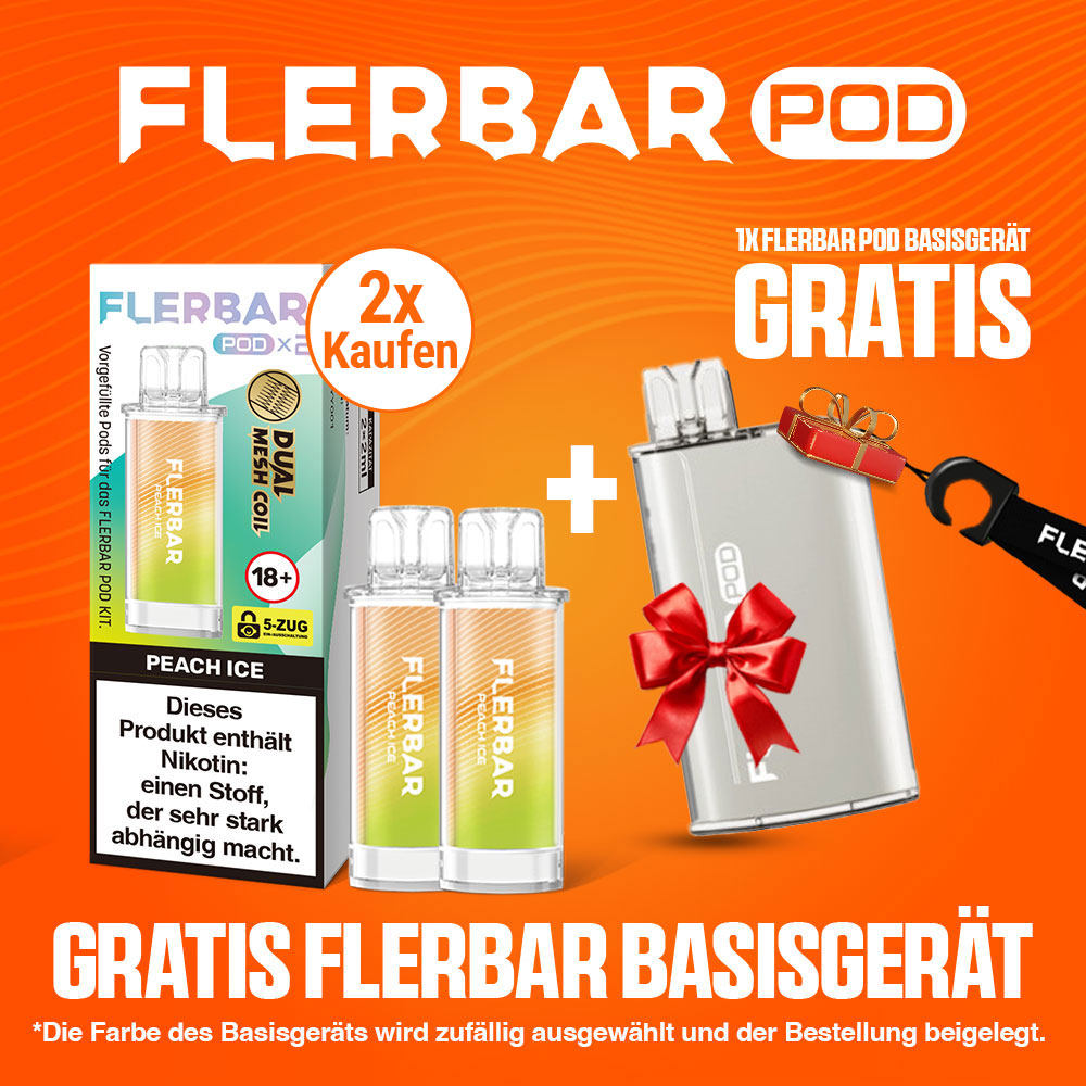 2x Flerbar Pods Peach Ice + Flerbar Pod Kit Silber Gratis